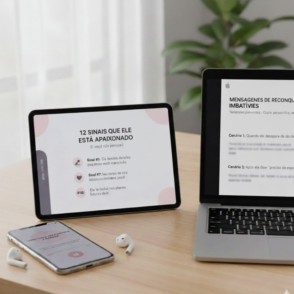 É o primeiro e único sistema passo a passo que te mostra como aceder diretamente ao desejo mais profundo e secreto de um homem… aquele que ele nem sequer sabe que tem. Aquele que, quando ativado, faz de ti a sua obsessão emocional. A mulher que ele simplesmente NÃO CONSEGUE parar de pensar.